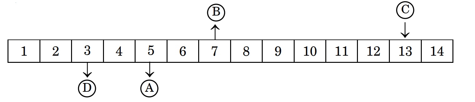 The following table shows the pH values of four solutions A, B, C and D on a pH scale :